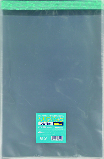 クリアパック フタ付 270×380+40 テープ付 1セット(200枚:100枚入×2パック)(品番:KP270380)